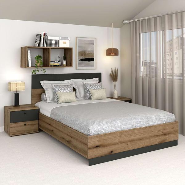 Patul matrimonial AMBRO, 160x200cm cu suport saltea FORTE inclus, realizat dintr-o combinatie eleganta din Stejar si Antracit adauga un plus de estetica si functionalitate oricarei camere. Exclusiv Ta...