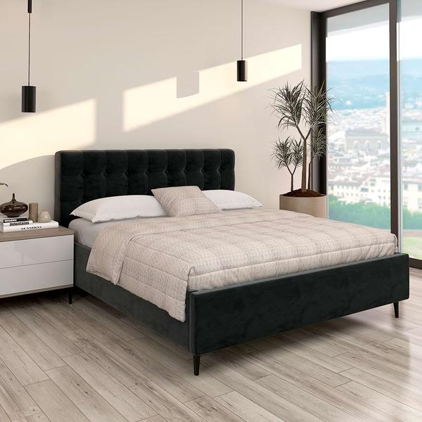 Patul tapitat GEORGIA PRO, 140x200, cu somiera rabatabila si lada depozitare, husat cu catifea Neagra, se distinge printr-un design modern si elegant, fiind ideal pentru orice dormitor sofisticat. Tapiteria din catifea neagra ofera o senzatie luxoasa si confortabila, completand perfect orice stil de decor interior. Liniile curate si structura solida subliniaza o estetica contemporana, oferind in acelasi timp un confort deosebit. Patul dispune de o somiera rabatabila, oferind spatiu de depozitare dedesubt, ceea ce il face nu doar estetic placut, ci si practic. Marginile patului sunt bine definite si finisate, contribuind la aspectul sau sofisticat. Cadrul patului se ridica 12cm de la pardoseala, facand posibila utilizarea robotilor de curatenie. Exclusiv TAMOS! Pret de producator , livrare rapida si Gratuita ! Configurabil configurezi husa (piele ecologica, piele texturata, catifea, stofa) configurezi dimensiune pat - 140cm, 160cm, 180cm configurezi complemente - asezare pe coltul camerei, saltele, noptiere, comode, dulapuri Avantaje CONFORT - Combinand armonios rigoarea geometrica a tabliei cu formele arcuite pe care le creaza buretele folosit din belsug, patul Georgia da nastere unui stil personal si cald. Incadrandu-se cu succes in orice stil de amenajare, realizeaza combinatii valoroase cu mobilierul din lemn, furniruri sau placaje. FUNCTIONALITATE - Patul tapitat Georgia Pro contine o somiera metalica ranfortata, compusa din lamele arcuite din fag, montate pe un cadru metalic foarte solid. Sistemul de ridicare compus din balamale si amortizoare cu gaz vin sa completeze fiabilitatea suportului de saltea. Compartimentul de depozitare generos si complet tapitat iti va organiza si iti va sistematiza spatiul din dormitor. REZISTENTA - Pentru o rezistenta fara cusur, am proiectat pentru patul Georgia PRO un sistem metalic ce sustine fundurile de pat distantate de sol si rigidizeaza cadrul patului. In plus, o bara de rigidizare metalica dispusa transversal sprijina somiera in starea de repaus si impiedica deformarea lateralelor patului in timp. Sistemul permite o aerisire corecta a saltelei si a lucrurilor ce se depoziteaza in lada patului. Mobilier kit, se livreaza demontat, ambalat in cutii de carton Kitul contine schita montaj, feronerie, certificat garantie si conformitate Somiera metalica cu lamele arcuite din fag Pistoane cu gaz (amortizoare) Spatiu depozitare sub somiera cu structura metalica, distanta de pardoseala si suport depozitare tapitat integral Picioare metalice negre Cusaturi de tapiterie cu banda de intarire Dimensiuni pat Georgia Pro 140x200cm Dimensiuni interioare: 141x201cm Dimensiuni exterioare: 150x217cm Inaltime tablie mare: 115cm Inaltime cadru pat: 30cm Inaltime de la sol: 12cm Texturi / culori disponibile catifea Neagra Garantie 24 luni Transport GRATUIT Transport GRATUIT in toata tara . Produsele se preiau de la masina. *NOTA * Imaginile afisate sunt doar pentru scopuri ilustrative. Dimensiunile reale ale produsului pot diferi usor fata de cele prezentate. De asemenea, culorile pot varia in functie de setarile dispozitivului dvs. Va rugam sa verificati specificatiile produsului pentru detalii exacte, *Noptiera, salteaua de pat, lenjeria si celelalte acesorii din imagine nu sunt incluse in pret.