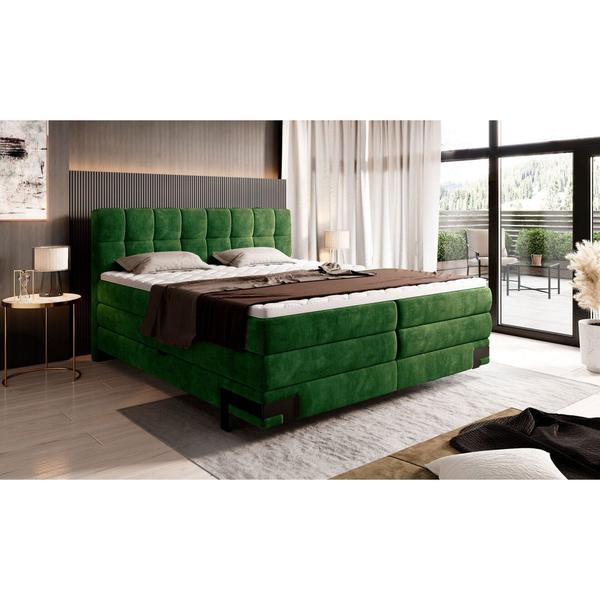 INFORMATII PRODUS PAT TIP BOXSPRING VIANO 160, STOFA CATIFELATA VERDE - KRONOS 19, STRUCTURA DIN DOUA SALTELE SUPRAPUSE, UNA BONELL SI UNA POCKET, CU DOUA LAZI DE DEPOZITARE, SUPRAFATA DE DORMIT DE 16...