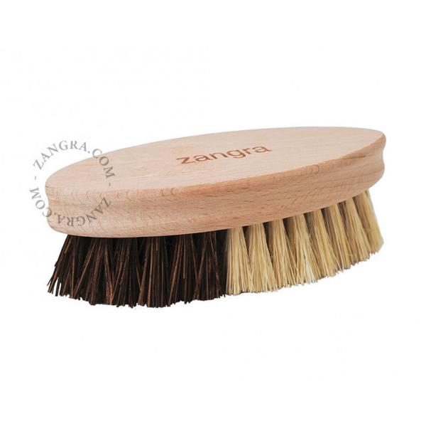 Descriere Perie pentru curatat legume din lemn de fag Zero Zangra Dimensiuni: \- Lungime: 13 cm \- Latime: 5,5 cm \- Inaltime: 4,5 cm Material: lemn de fag si fibre vegetale Aceasta perie din lemn de fag si fibre vegetale va curata legumele cu grija si eficient. Peria scapa legumele de urmele manipularii multiple intre cules si consum, reziduurile (pamant, praf etc.) si unele dintre germeni si bacterii.