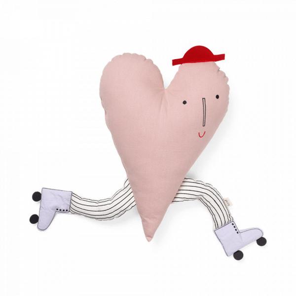 Descriere Perna roz din bumbac 32x44 cm Heart Ferm Living Dimensiuni: - Lungime: 32 cm - Latime: 10 cm - Inaltime: 44 cm Material: 100% bumbac certificat GOTS, umplutura din poliester reciclat Adaugati un element moale si jucaus in camera copilului cu perna Heart. Fabricata din bumbac organic certificat GOTS si umpluta cu umplutura de poliester reciclat, perna infatiseaza o inima fermecatoare de patinaj cu role, cu diverse detalii din pasla.