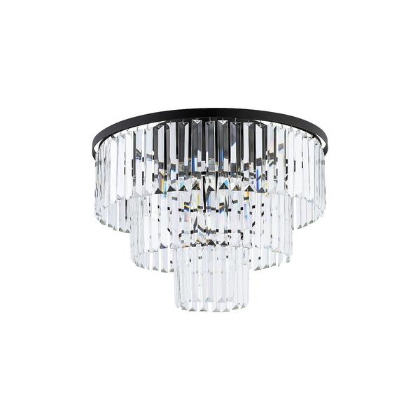 Plafoniera cu abajur din multiple cristale din material plastic transparent cu prinderi din metal. Dimensiuni: 56x56x41 cm Greutate: 4.8 kg Bec recomandat: 9xE14 max 60W Culori disponibile: negru / crom