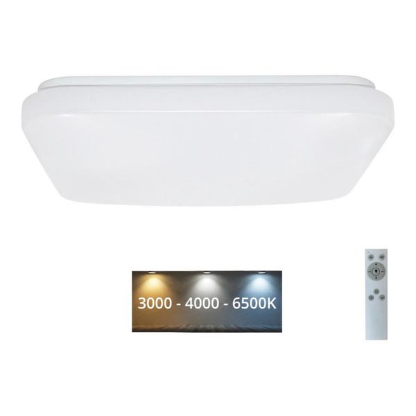 Plafoniera LED cu telecomanda. Luminozitate reglabila, functie de modificare a temperaturii de culoare (culoarea luminii).Temperatura de culoare: 3.000/4.000/6.500 K. Functie de memorie. Produsul poate fi controlat si printr-un simplu intrerupator de perete. Aspectul si functiile telecomenzii pot diferi in functie de lotul de corpuri de iluminat, intrucat producatorul depune eforturi continue in vederea imbunatatirii acesteia.