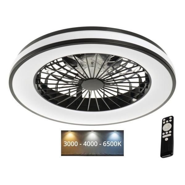Plafoniera moderna cu un ventilator puternic incorporat. Aspectul si functiile telecomenzii pot diferi in functie de lotul de corpuri de iluminat, intrucat producatorul depune eforturi continue in vederea imbunatatirii acesteia.