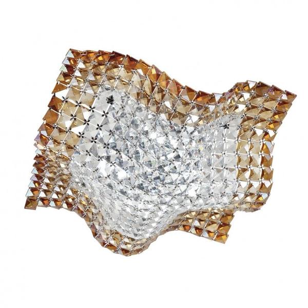 Plafoniera din metal si sticla, decorata cu cristale. Tip bec: 4 x G9 MAX 28W. Dimensiuni: 44 cm x 44 cm x 12 cm (W x D x H). Becurile nu sunt incluse.