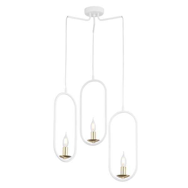 Informatii generale Tip articol Pendul Numar surse de lumina 3 buc. - tip soclu E14 (max. 40W) - becul nu este inclus Material baza Metal Culoare baza Alb Lungime 56 cm Inaltime 53-80 cm Baza Material Metal Culoare Alb Finisaj Mat Ornament Ornament inclus Da, metal alb