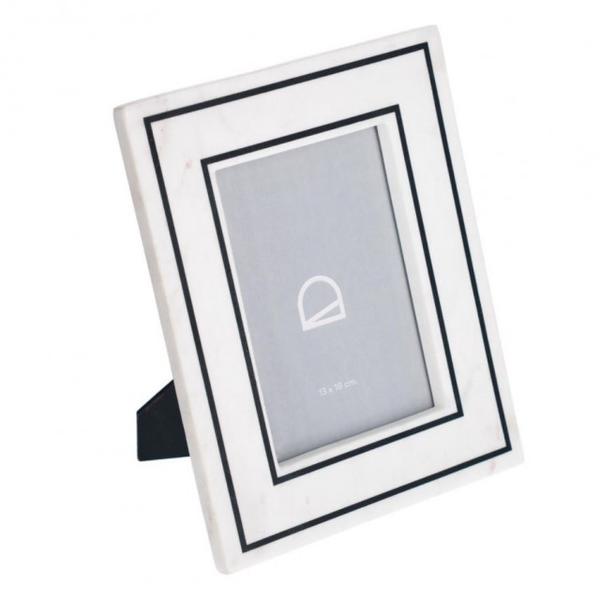 Descriere Rama foto alb/negru din marmura 20x25 cm Vittoria Kave Home Dimensiuni fotografie: 13x18 cm Material: marmura, MDF si sticla Produsul este unicat datorita marmurei naturale, astfel incat modelul poate varia usor fata de cele prezentate in imagine. Pastrati-va cele mai bune momente la vedere. Aceasta rama din marmura cu motiv geometric este modalitatea simpla de a oferi un loc de cinste acelor amintiri de neuitat.