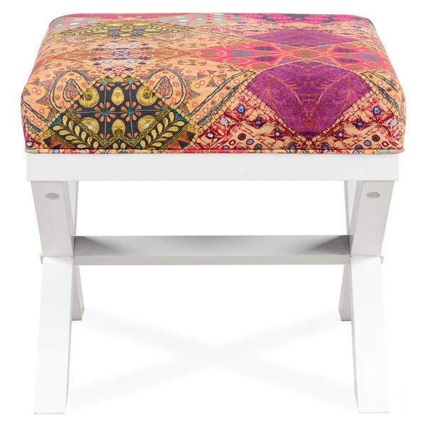 Taburet, stofa Raoul. Rigurozitatea liniilor drepte se intersecteaza cu delicatetea pernei din stofa imprimata. Picioarele incrucisate sunt realizate din lemn.Taburetul Raoul este o aditie de bun augu...