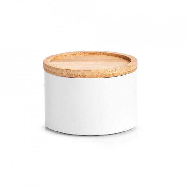Descriere Recipient cu capac alb/maro din metal si lemn 10x13 cm Davido Zeller Material: metal si lemn de bambus Cu acest recipient, puteti aduce rapid ordine in bucataria dumneavoastra. Cutia alba simpla se inchide cu un capac realizat din bambus ecologic. Un inel de silicon este integrat in capacul din bambus, astfel incat continutul, de exemplu cafea, ceai, biscuiti sau alte alimente, sa ramana proaspat pentru o perioada lunga de timp. Cutia stivuibila poate fi folosita si in afara bucatariei, de exemplu pentru articole mai mici in baie sau la birou.