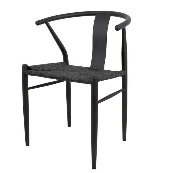 Scaun din metal, cu sezut impletit din fibra naturala. Dimensiune: 55 cm x 50 cm x 75 cm (W x D x H).
