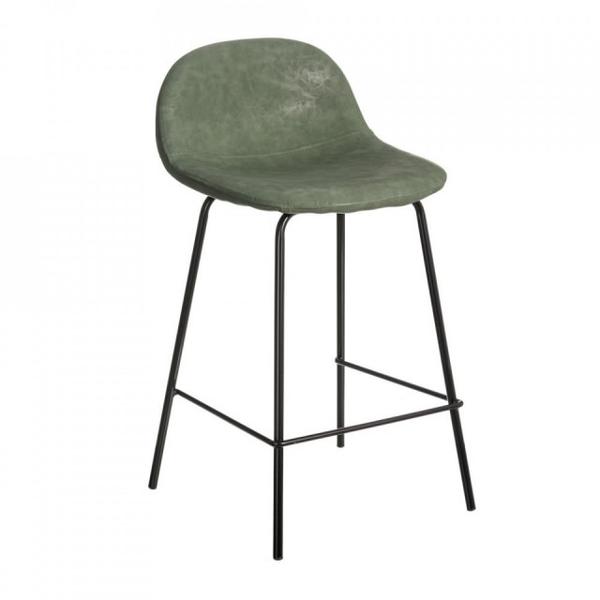 Descriere Scaun bar verde din piele ecologica si metal Tele The Home Collection Produsul prezinta zgarieturi pe cadru si are sezutul cu usoare denivelari. ale materialului Dimensiuni: \- Lungime: 42,5 cm \- Latime: 36 cm \- Inaltime: 80 cm \- Inaltime sezut: 60 cm \- Dimensiuni sezut: 33,5x42,5 cm Material: metal si poliester si umplutura din spuma cu densitatea 23 kg/mc