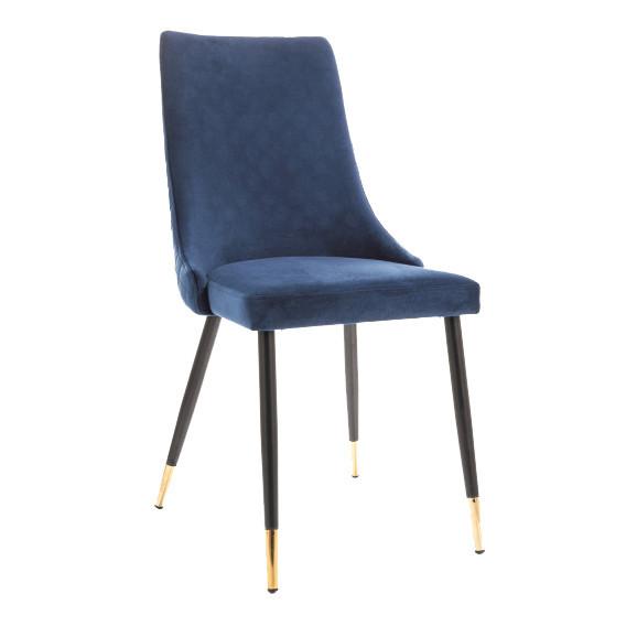 Descriere Scaun dining albastru din catifea si metal Piano Velvet The Home Collection Material: catifea si metal Scaun elegant Piano este tapitat intr-o tesatura de catifea extrem de placuta. Un scaun confortabil cu un spatar inalt profilat face sa fie ideal pentru o sala de mese, un restaurant, precum si pentru birouri sau pentru holul unui hotel.