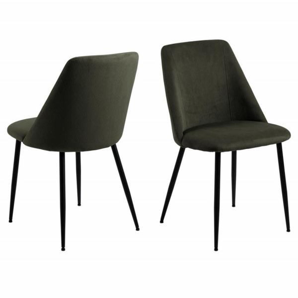 Descriere Scaun dining verde oliv/negru din catifea si metal Ines Actona Company Material: catifea din poliester si otel, umplutura din spuma poliuretanica de 28 kg/mc Dimensiuni sezut: 44x49,5 cm Sar...