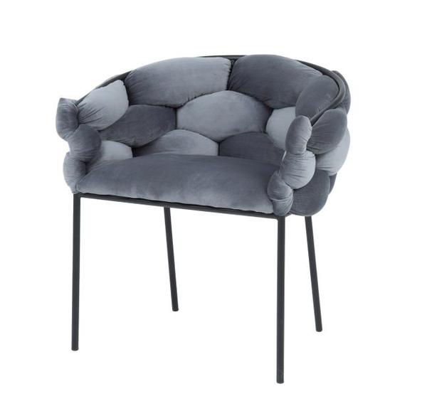 Scaun modern tapitat cu tesatura de catifea. Picioare metalice cu finisaj negru mat. Materiale: metal, textil, lemn, spuma.