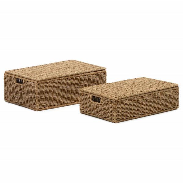 Descriere Set 2 cutii cu capac maro din fibre naturale si metal Tossa Kave Home Material: iarba de mare si fier Produsul este realizat din materiale naturale, culoarea si dimensiunile pot varia usor....