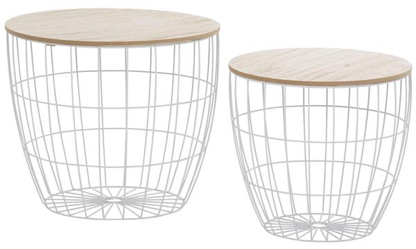 Descriere Set 2 masute cafea Holz Dimensiuni masuta mica: 38/35/33 cm, mare: 46/40/41 cm Material: cadru din metal, blat din PAL Culoare: cadru alb Placa detasabila Spatiu suplimentar de stocare