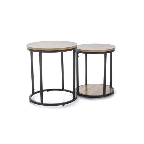 INFORMATII PRODUS SET 2 MASUTE INTO, STEJAR/NEGRU, FURNIR/METAL, 40X45/35X40 CM Dimensiuni masuta mare: Lungime: 40 cm Adancime: 40 cm Inaltime: 45 cm Dimensiuni masuta mica: Lungime: 35 cm Adancime:...