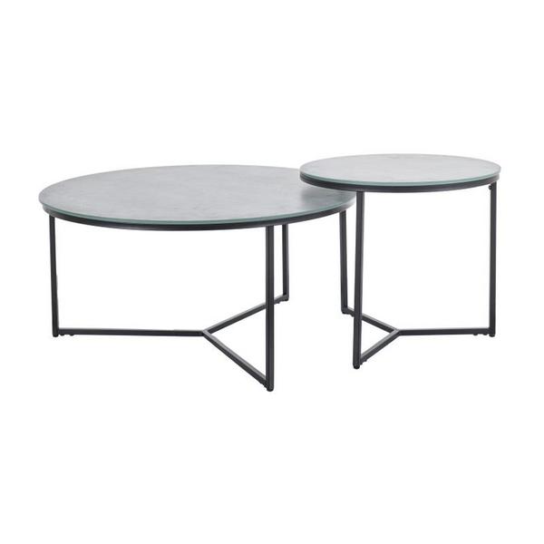 INFORMATII PRODUS SET 2 MASUTE PALERMO II, GRI/NEGRU, STICLA/METAL, 80X40/50X45 CM Dimensiuni masuta mare: Lungime: 80 cm Adancime: 80 cm Inaltime: 40 cm Dimensiuni masuta mica: Lungime: 50 cm Adancim...
