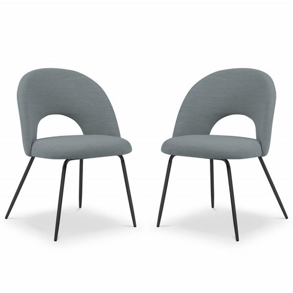 Descriere Set 2 scaune dining albastre din textil si metal Emma Besolux Dimensiuni: \- Lungime: 52 cm \- Latime: 48 cm \- Inaltime: 81 cm \- Inaltime sezut: 46 cm \- Dimensiuni sezut: 44x48cm \- Sarci...