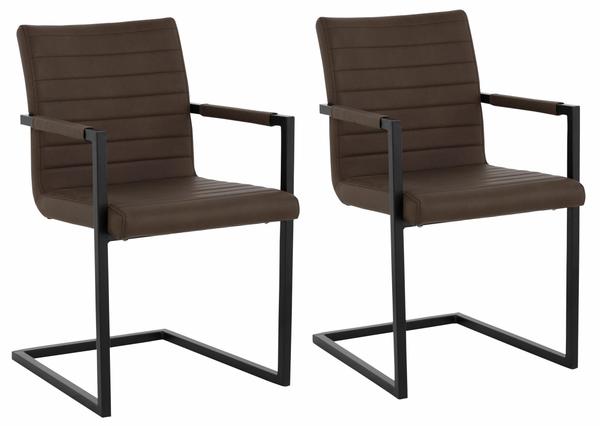 Descriere Set 2 scaune Sabina maro imitatie de piele Set 2 scaune Sabina dimensiune: 54/59/87 cm inaltime sezut: 48 cm adancime sezut: 46 cm sustine 120 kg material: cadru metalic, tapitarie din imitatie de piele culoare: cadru negru, tapitarie maro