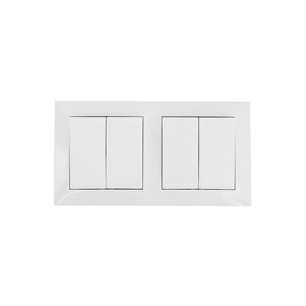 Intrerupator dublu cu rama. Ambele intrerupatoare se impart in doua intrerupatoare. Tensiune: 250 V/10 A. Metoda de instalare: incastrata. Dimensiuni decupaj: min. 125 x 54 x 40 mm.