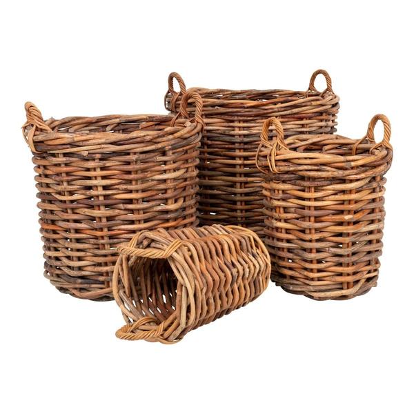 Set 4 cosuri decorative realizate din ratan. Diametru: 27/44/57/72 cm. Inaltime: 49/58/63/71 cm. Culoare: natural. *Culoarea reala a produsului poate fi usor diferita fata de cea din imaginile prezentate, datorita mai multor factori, cum ar fi intensitatea luminii si/sau luminozitatea ecranului.