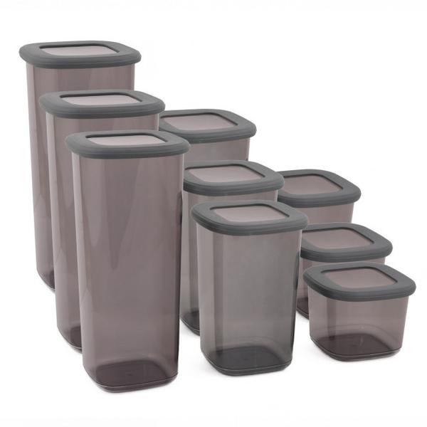 Descriere Set 9 recipiente cu capac gri din plastic Beyo The Home Collection Dimensiuni: 10 x 10 x 24,5 cm /(3 bucati) 10 x 10 x 16,5 cm /(3 bucati) 10 x 10 x 9,5 cm /(3 bucati) Material: plastic Volu...