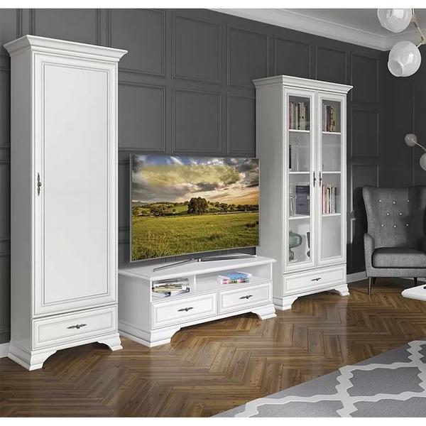 INFORMATII PRODUS SET MOBILIER PENTRU LIVING IDENTO 4, ALB, PAL/MDF, FORMAT DIN: DULAP, VITRINA SI COMODA TV Dimensiuni: Dulap (S320-REG1D1S-BI): 70x44x198 cm Vitrina (S320-REG2W1S-BI): 99.5x43.5x197....