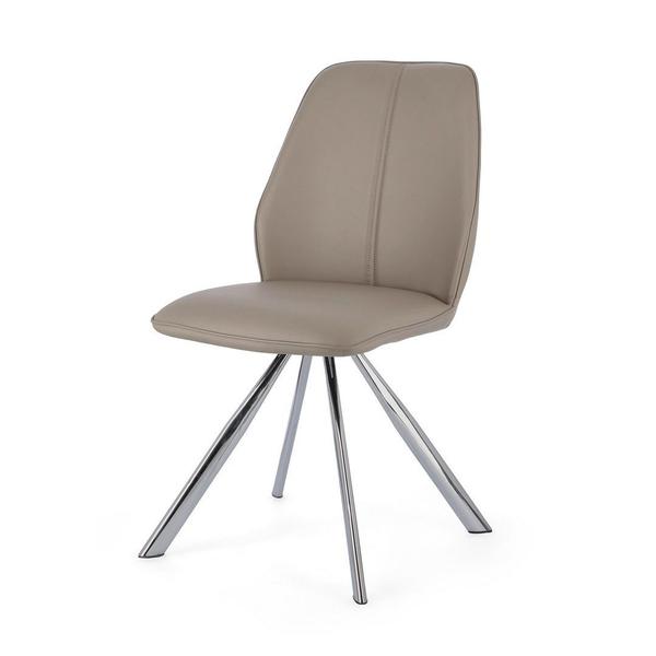Scaun realizat din cadru din placaj, picioare din otel cromat, umplutura cu spuma poliuretanica iar husa din imitatie de piele. Picioarele necesita asamblare. Dimensiune: 44 cm x 62 cm x 88 cm (W x D x H). Inaltime sezut: 45 cm.
