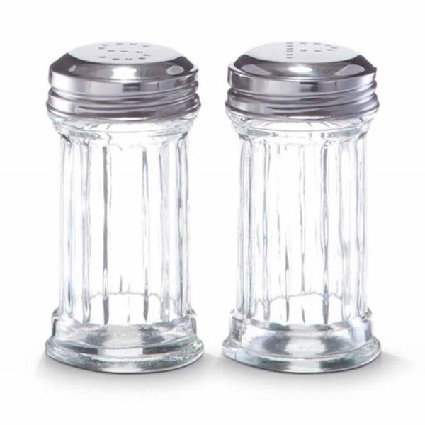 Descriere Set solnita si pipernita din sticla si metal 60 ml Salt Pepper Shaker Zeller Material: sticla si inox Capacitate: 2 x 60 ml Acest set practic nu trebuie sa lipseasca de pe masa dumneavoastra. Capacul este prevazut cu literele perforate "S" si "P" pentru o dozare exacta.
