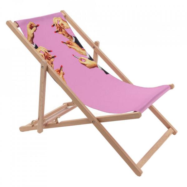 Descriere Sezlong pliabil multicolor din poliester si lemn de fag Lipstick Pink Toiletpaper Seletti Dimensiuni: - Lungime: 87 cm - Latime: 58 cm - Inaltime: 81 cm Material: poliester si lemn de fag Pr...
