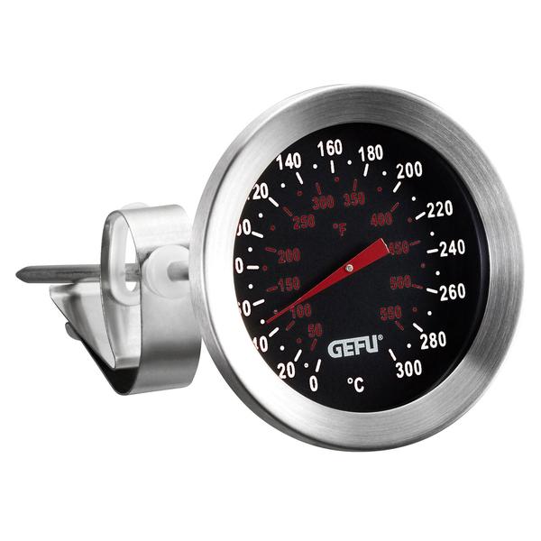 Termometru Sido. Termometru din gama Sido este un accesoriu practic care indica temperatura preparatelor voastre intr-un timp rapid. Acesta poate reda temperatura atat in grade Celsius, cat si Fahrenheit. Este realizat din inox, fiind o piesa rezistenta si functionala pentru colectia voastra. Dimensiune: diam.6,2 cm. Material: inox. Culoare: argintiu. Producator: GEFU