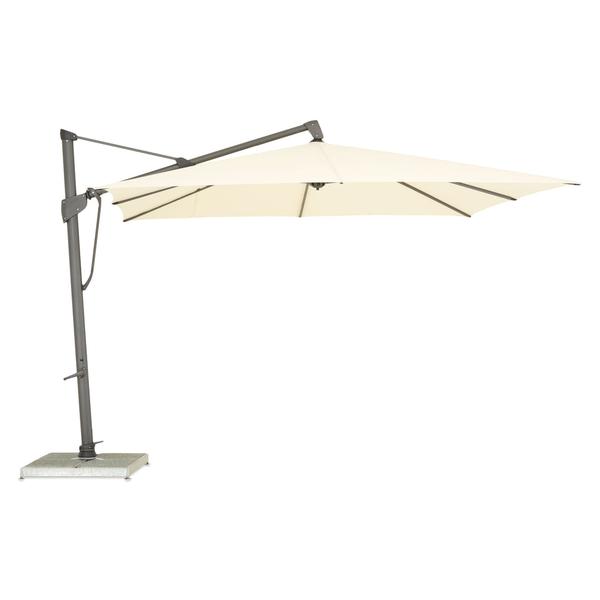 Informatii generale Articol Umbrela Dimensiuni L.350 x l.350 x H.300 cm Material Aluminiu, poliester, beton Baza inclusa Da