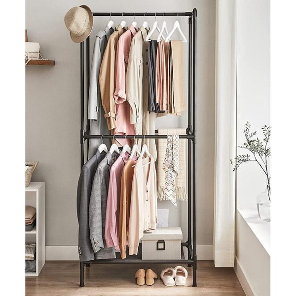 O multime de spatiu pentru agatat. Doua sine de suspendare in mijloc permit agatarea mai multor articole de imbracaminte pe un suport. Raftul de jos din material netesut poate tine saci, pantofi sau c...
