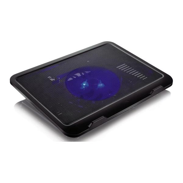Suport de racire pentru laptop cu ventilator si retroiluminare cu leduri. Prevazut cu 1 port USB. Dimensiunea suportului este ideala pentru laptopurile cu ecran cu dimensiunea de pana la 15,6 toli. Diametrul ventilatorului: 12,5 cm. Numar de ventilatoare: 1. Viteza ventilatorului: aproximativ 1.000 rpm. Nivelul de zgomot: 40 dbA. Debitul de aer: 20 CFM. Lungimea cablului: 55 cm. Dimensiunea compatibila a ecranului laptopului: 10-15,6.