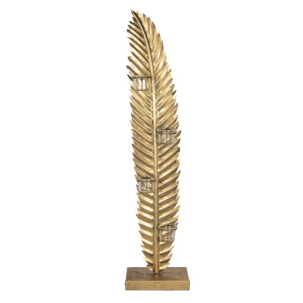 Descriere Suport lumanari pana aurie 20/87 cm Suport lumanari pana aurie 20/87 cm Dimensiuni: 20/14/87 cm Culoare: auriu Material: fier