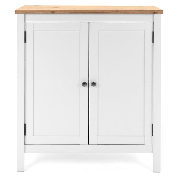 Informatii generale Articol Comoda Dimensiuni L. 80 x l. 40 x H. 90 cm Material PAL Culoare Alb, stejar, finisaj mat Numar compartimente 1 Material picioare PAL Culoare picioare Alb, finisaj mat Numar picioare 4 Tip manere Aplicate Top Material top PAL Culoare top Stejar, finisaj mat Lungime top 80 cm Latime top 40 cm Compartiment 1 Numar usi 2 buc. PAL, tip batant Culoare usa Alb, finisaj mat Polite 1 buc. PAL, alb finisaj mat