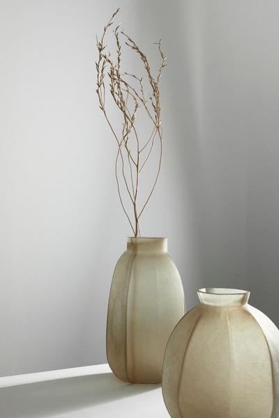 Vaza lucrata manual, din sticla. Orice diferenta de culoare sau imperfectiune este considerata o caracteristica a unicitatii sale. Diametru: 28 cm. Inaltime: 49.5 cm.